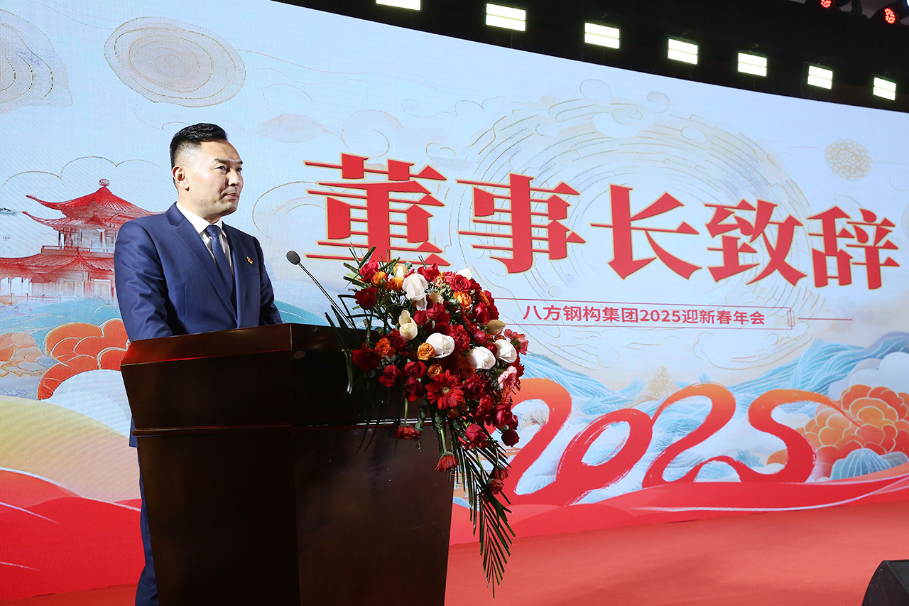 致辞末尾,董事长王军向支持集团发展的各界朋友及辛勤付出的全体员工、家属表达诚挚谢意,并致以新春祝福,激励大家携手并肩,为八方钢构的辉煌未来奋勇拼搏 。