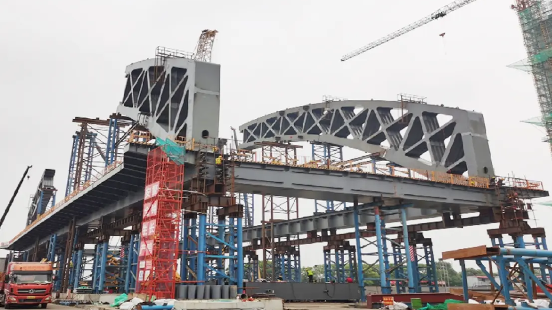 钢构桥(steel bridge),主要承重结构采用钢材的桥梁,即钢结构桥梁、钢桥。装配式钢桥在世界各地都得到了广泛应用。主要的设计概念是以最少种类的单元构件,拼装成能承载各种荷载、不同跨径的装配式钢桥,且只需一般中型卡车运输,特殊情况下能全部依靠人力来搭建。主要承重结构采用刚构的桥梁。梁和腿或墩(台)身构成刚性连接。结构形式可分为门式刚构桥、斜腿刚构桥 、T形刚构桥和连续刚构桥。